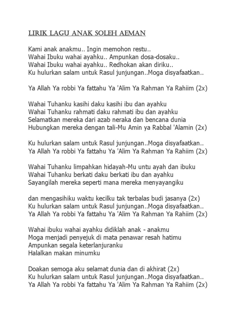 Aeman ayah Lyrics are provided for educational purposes only. Lahirku ke dunia Ku diasuh mengenal allah Ku diajar sebut namanya Juga. Oh ibu sudah nyaman tempatmu.